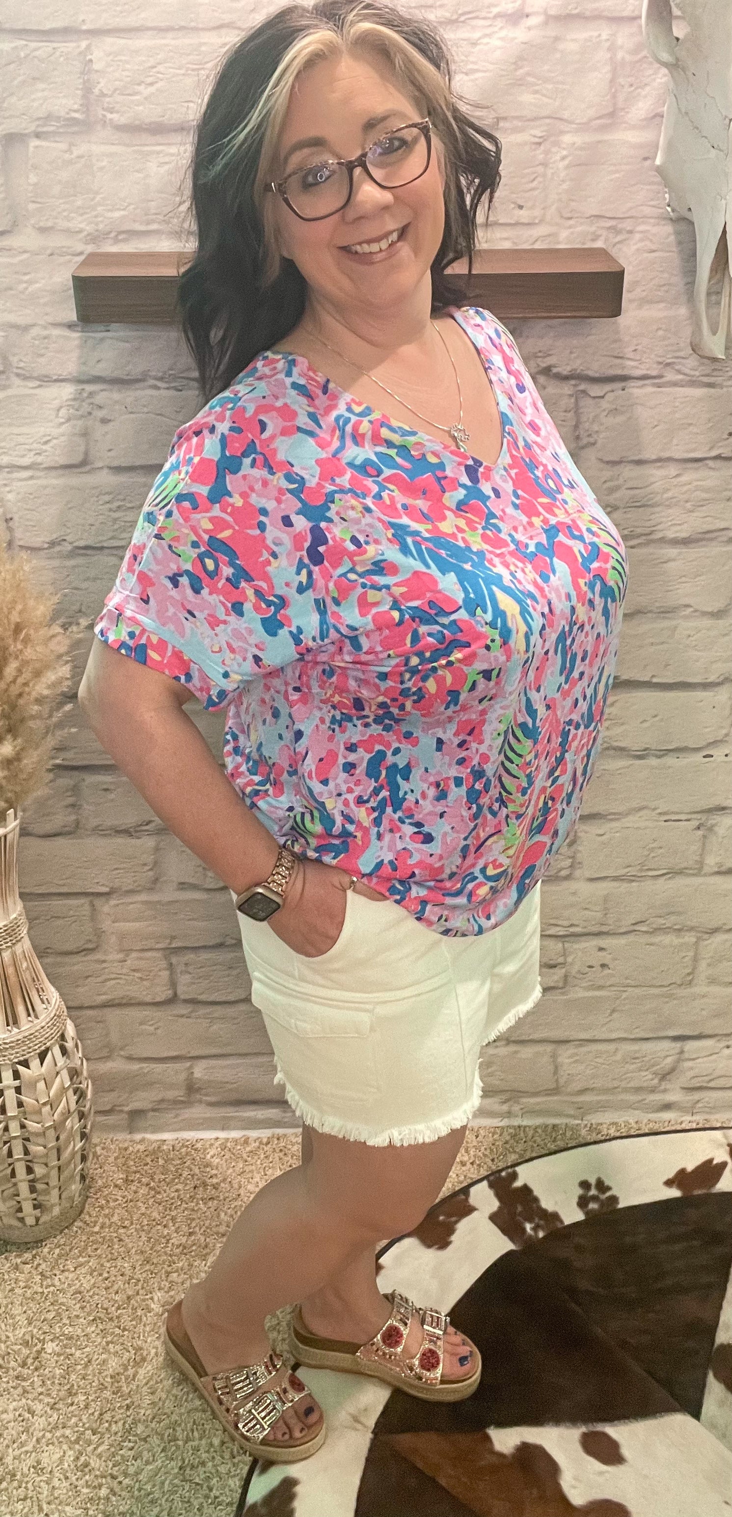 The Dottie Shorts are versatile and comfortable with an elastic waistband for a perfect fit. In classic white, these cargo shorts are a must-have for any wardrobe. The model is normally a size 10-12 wearing a size Large.